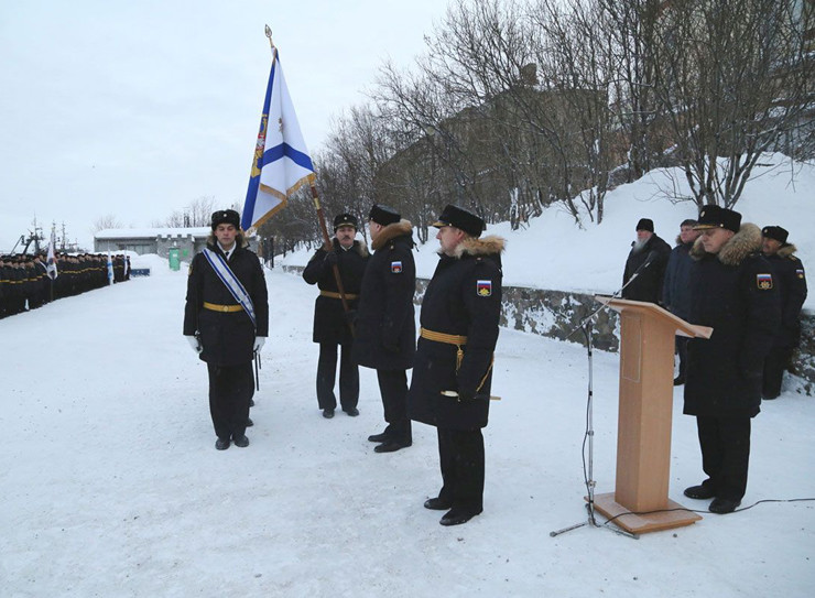 В исторической базе Северного флота Полярном прошла торжественная церемония передачи личного штандарта командующего Кольской флотилией разнородных сил.