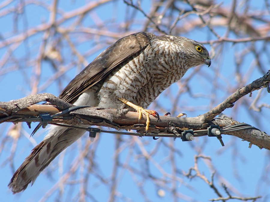 «На проспекте Героев Североморцев, 60 сидит у подъезда ястреб-тетеревятник, большой довольно», - сообщает автор фото.