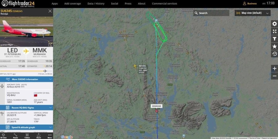 Согласно данным системы ФР24 рейс Петербург - Мурманск SU6345 вернулся в аэропорт вылета.