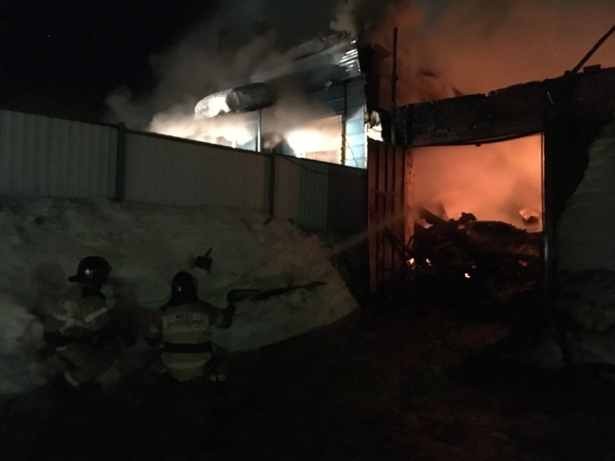 В результате пожара обгорели два бокса, произошло обрушение кровли