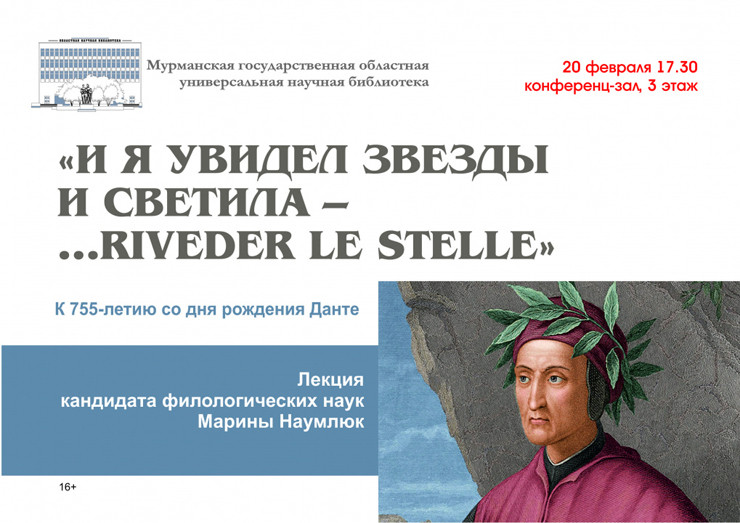Великому итальянскому поэту и мыслителю Данте Алигьери исполняется 20 февраля 755 лет. В честь этого события мурманчан приглашают в Областную научную библиотеку послушать о творчестве знаменитого деятеля Средневековья.