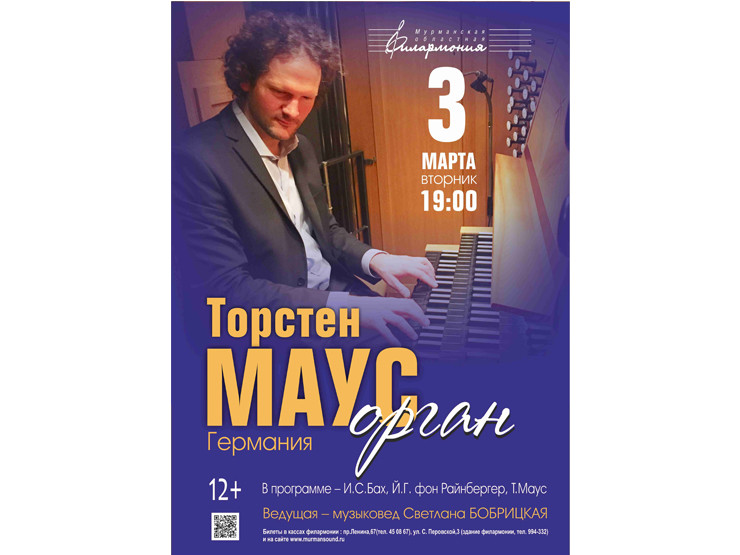 Мурманская филармония приглашает 3 марта в 19 часов на концерт «И.С. Бах и органные импровизации». Исполнитель - Торстен МАУС (орган), Германия. В программе – Иоганн Себастьян Бах, Йозеф Габриэль фон Райнбергер, Торстен Маус.