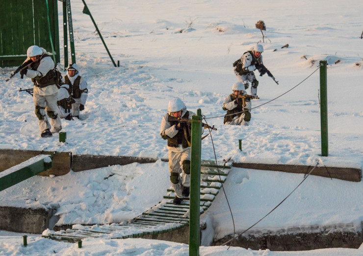 Военнослужащие-разведчики боролись на полигонах Печенгского района. Им предстояло пройти обязательные секции конкурса, среди которых преодоление препятствий, десантная подготовка, марш-бросок.