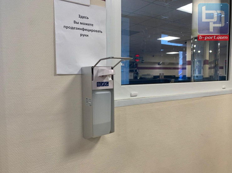 Для пассажиров также обустроены специальные деспенсеры с антисептиком для дезинфекции рук