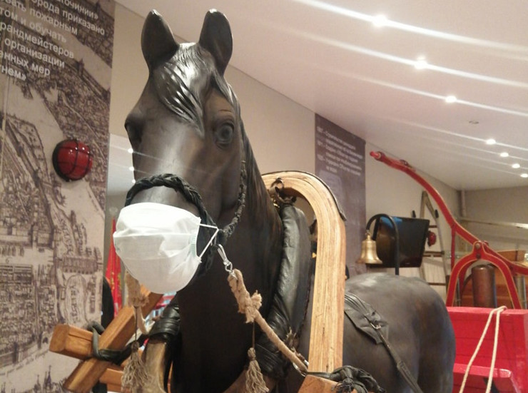 Одним из таких стал макет лошади пожарной повозки. На морду фигуре надели медицинскую маску в знак борьбы с опасным вирусом. Об этом сотрудники галереи рассказали в группе «ВКонтакте».