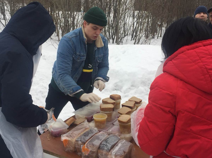 В прошлую субботу активисты «Доброго обеда» проводили раздачу еды с учетом правил, направленных на противодействие распространению коронавируса. Руководитель фонда Алексей Пенкин ознакомил своих подопечных с изменениями и раздал памятки. Всех волонтеров обеспечили медицинскими масками и антисептиками.
