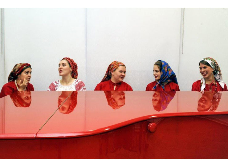 Признания судей была удостоена работа «Красный рояль». Фотограф запечатлел на снимке девушек из русского народного хора, которые сидели за красным роялем и просто общались во время перерыва между выступлениями.