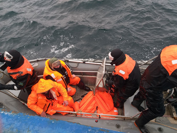 Пострадавшие были обнаружены и доставлены на борт корабля Через 3,5 часа после получения информации о происшествии. Там им оказали первую помощь. Отмечается, что медицинская помощь мужчинам не потребовалась.