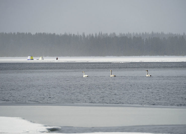 В интернете появились фото лебедей, которых северяне увидели на Пинозере. Фотографии опубликовала одна из жительниц города Полярные Зори. На кадрах три птицы величаво скользят по глади воды. Снимки вызвали у северян светлые чувства.