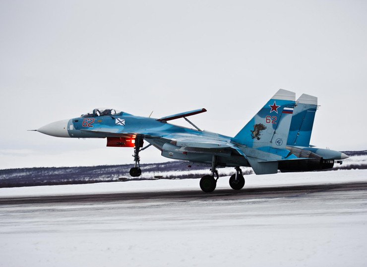 Пять истребителей Северного флота Су-33 вылетели с аэродрома Североморск-3 на полигон Лумбовский для отработки учебно-боевых задач. Пилоты корабельного истребительного авиаполка отработали нанесение бомбовых ударов по позициям условного противника и провели тренировки по воздушной разведке.