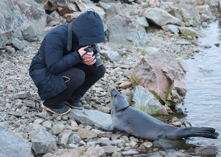 Жители Кандалакши традиционно фотографируются с арктическими млекопитающими