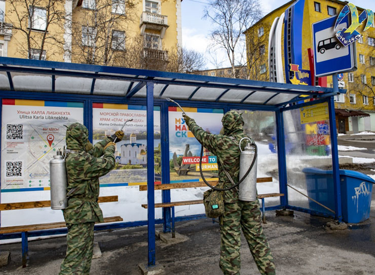 В Мурманске продолжается работа по дезинфекции городских объектов. Как рассказал «Би-порту» глава администрации Евгений Никора, обработка проходит при участии сил Северного флота и МЧС.