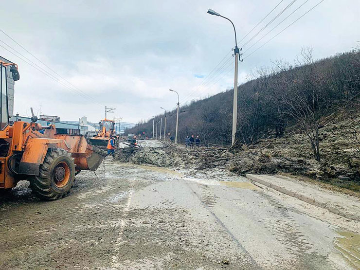 Сход грунта произошёл в районе остановки «Контейнерная». Из-за оползня на дороге временно перекрыто движение. Последствия инцидента устраняют работники ММБУ «Управление дорожного хозяйства».