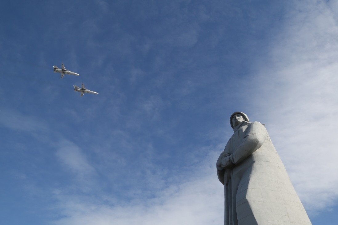 В Мурманске состоялся авиапарад в честь 75 годовщины Победы советского народа в Великой Отечественной войне. С четырех аэродромов в Мурманской и Вологодской областях вылетели три вертолета и 14 самолетов Северного флота. В небе над Мурманском авиация собралась, чтобы пройти строем над памятником «Алеша».