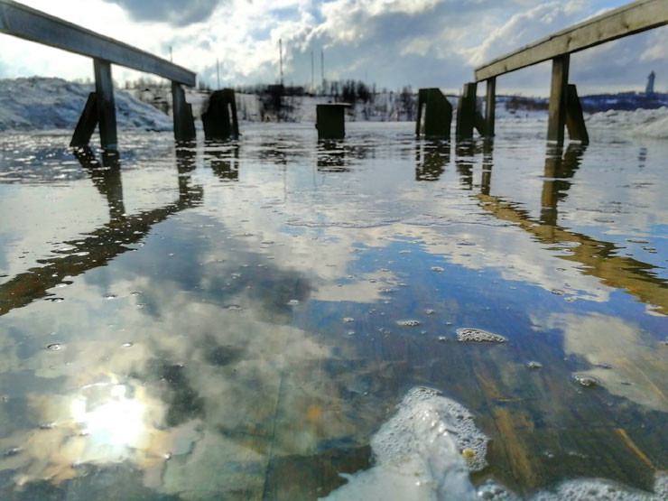 Причиной такого явления стало большое количество осадков, которое выпало за зиму. Местные «моржи» надеются, что сам домик не окажется отрезанным от «большой земли».