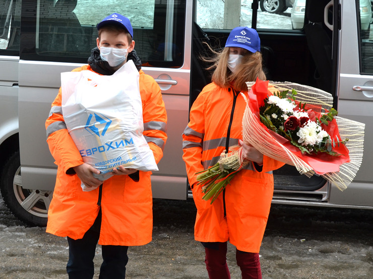 В Ковдоре работники комбината добровольно пополняют ряды волонтеров, чтобы доставить ветеранам Великой Отечественной войны, инвалидам, нуждающимся людям продуктовые наборы от ОНФ и «ЕвроХим». Помощь добровольцев получили более 300 ковдорчан и жителей поселков района. Молодые специалисты комбината раздают на улицах бесплатные маски горожанам.