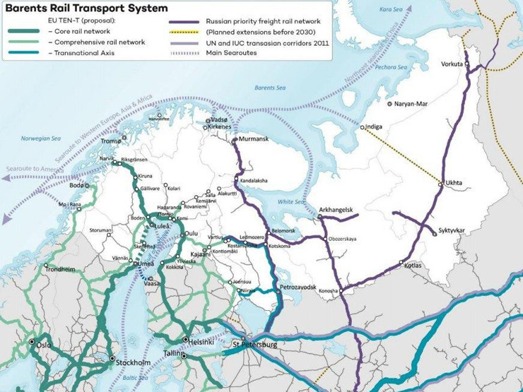 В Мурманской области предлагаются маршруты Петрозаводск – Мурманск – Киркенес, который включает в себя автомобильную и железную дорогу, морской маршрут Архангельск – Мурманск – Европейский континент, а также автодороги Рованиеми – Салла – Кандалакша и Мурманск – Райа-Йоосеппи – Ивало.