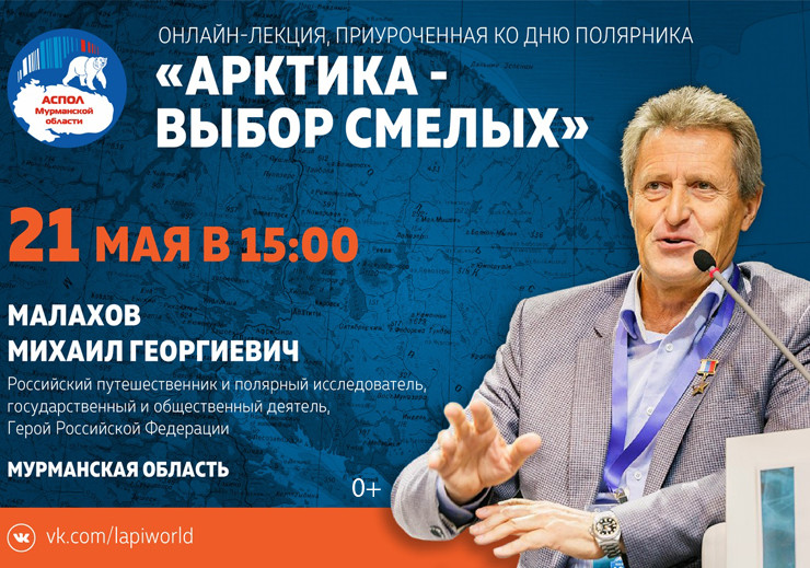Почётный полярник и радист, герой Российской Федерации и заслуженный мастер спорта СССР Михаил Малахов проведёт онлайн-лекцию, которая носит название «Арктика — выбор смелых». Занятие состоится 21 мая в 15:00 на интернет-платформе для видеоконференций Zoom.