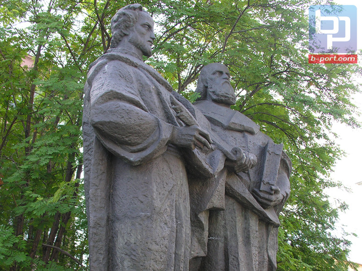 Памятник Кириллу и Мефодию представляет собой бронзовую скульптуру создателей кириллической азбуки высотой в шесть метров. Ежегодно 24 мая у монумента проходят торжества в честь Дня славянской письменности и культуры.