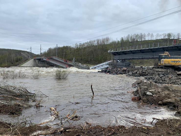 «Пострадавшая опора не выдержала, и вследствие этого произошло обрушение надводной части моста», - уточняет пресс-служба ГУ МЧС России по Мурманской области.