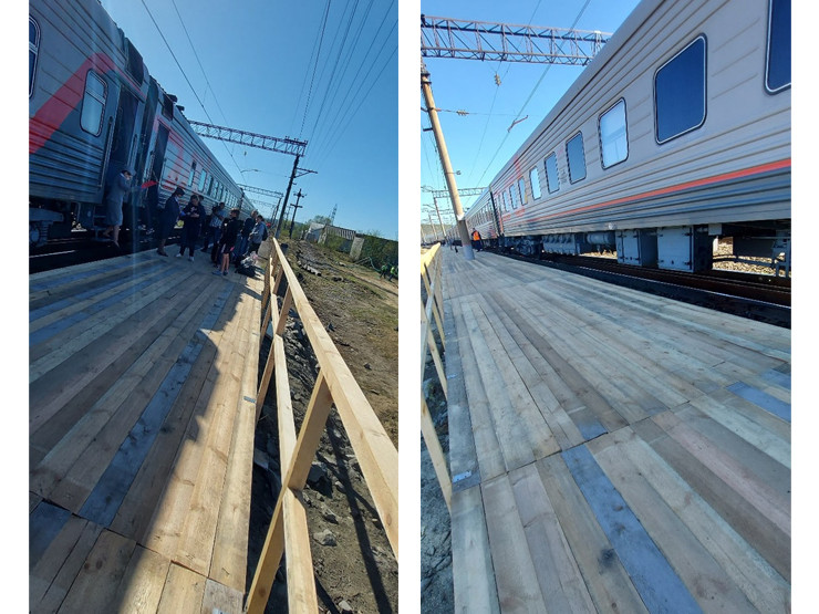 Для удобства пассажиров была удлинена железнодорожная платформа. Перрон доделали из дерева. Кроме того, был оборудован временный зал ожидания – брезентовая палатка со стульями. При этом ожидающие должны находиться на расстоянии 1,5 метра друг от друга.