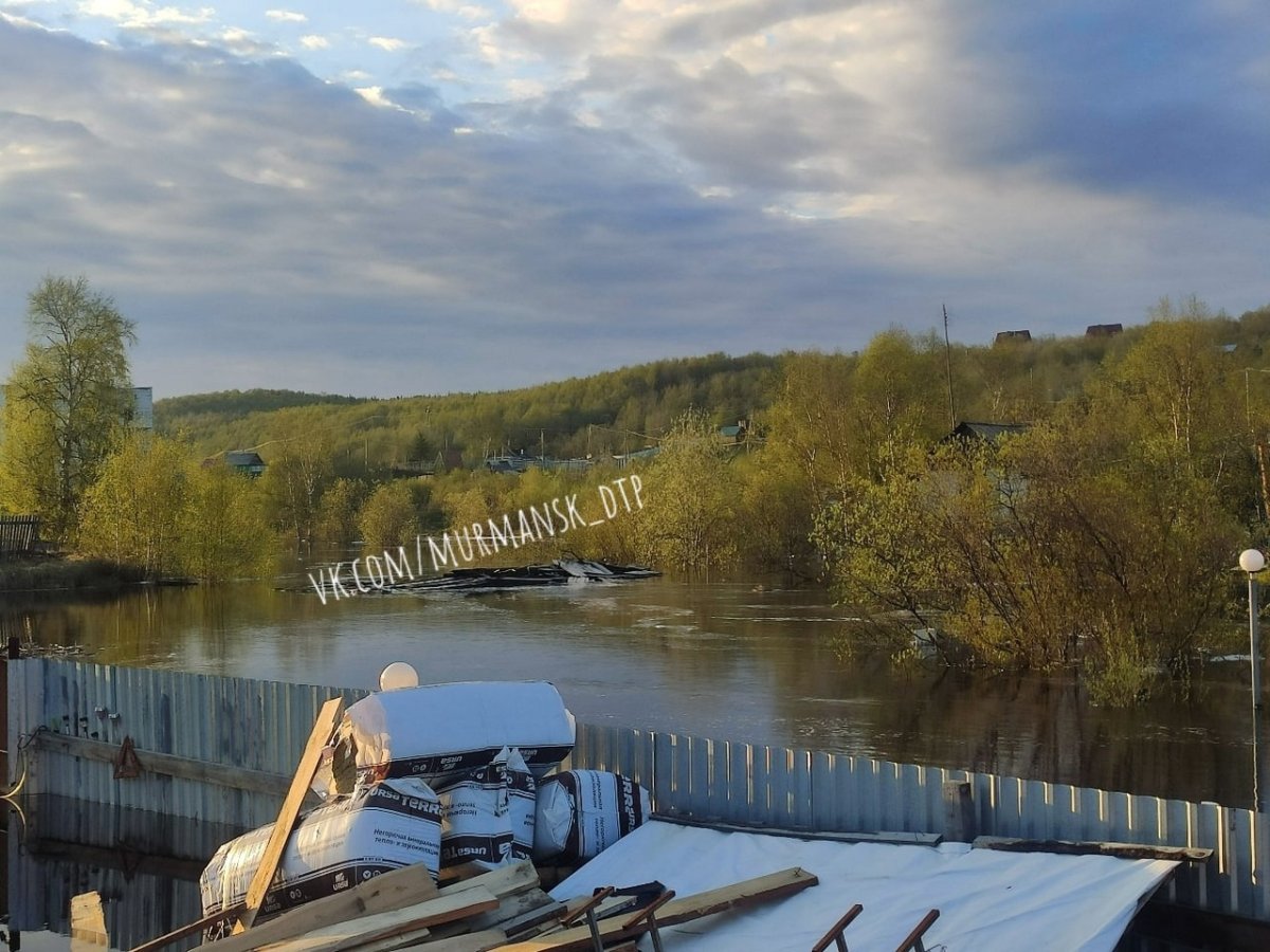 Уровень реки Кола достиг неблагоприятной точки. Как сообщалось ранее, Кильдинстрой затопит при достижении уровня воды отметки в 400 см. Днем в поселке был введен режим ЧС. 14 человек были вывезены из дачных участков.