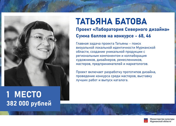 Проект Татьяны Батовой «Лаборатория Северного дизайна» будет поддержан министерством культуры Мурманской области