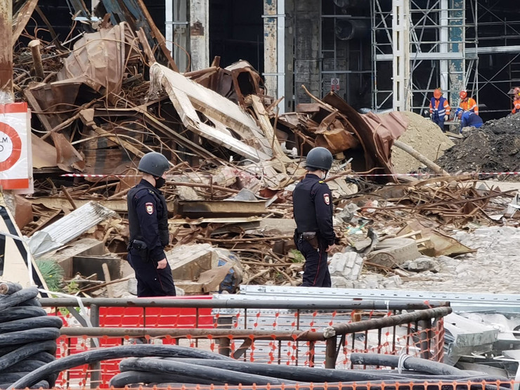 Территория стройки оцеплена, и на месте ждут взрывотехников, которые примут решение о вывозе снарядов или об уничтожении на месте обнаружения.