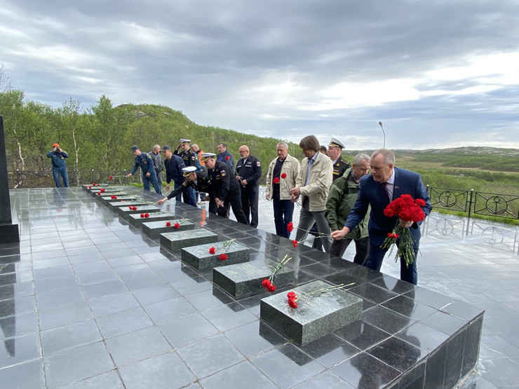 Председатель областной Думы Сергей Дубовой совместно с командованием Северного флота прибыли в Видяево, чтобы возложить цветы к мемориалу и почтить память 13 моряков. Военнослужащие погибли 18 июня 1984 года во время пожара на подводной лодке К-131.