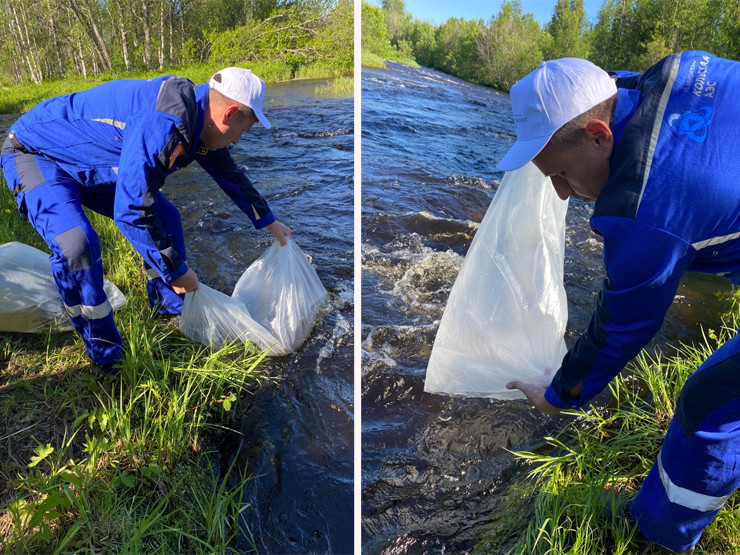 Сотрудники Кольской атомной электростанции и Умбского рыбного завода выпустили 18 июня в реку Умба 2650 мальков сёмги. Речная вода является для будущих рыб естественной средой обитания. В такой же воде в специальных контейнерах мальки были доставлены на место выпуска.