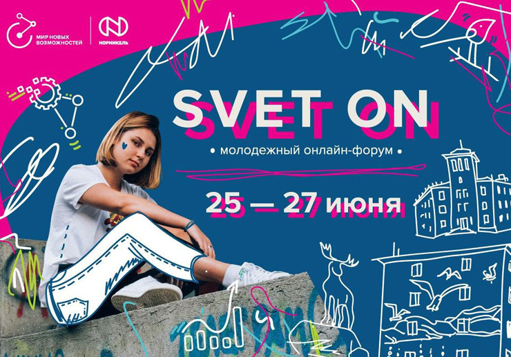 На протяжении трёх дней с 25 по 27 июня компания «Норникель» проводила молодёжный онлайн-форум SVET ON, который открыл летний цикл мероприятий благотворительной программы «Мир новых возможностей».