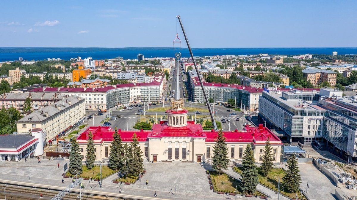 Замена 17-метрового шпиля производилась в рамках масштабной реконструкции исторического здания вокзала