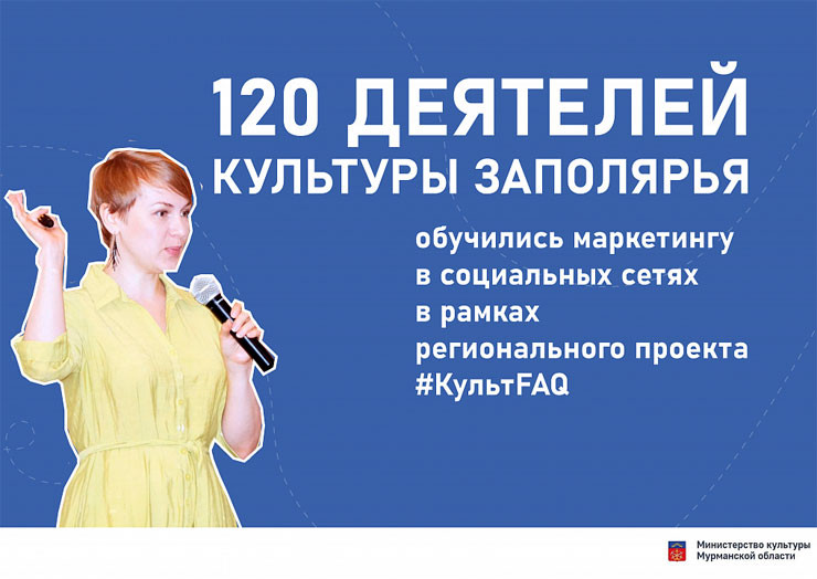 В рамках проекта «КультFAQ» состоялись бесплатные онлайн-курсы по маркетингу в социальных сетях. Участие в программе приняли 120 деятелей культуры Мурманской области, сообщает Министерство культуры.