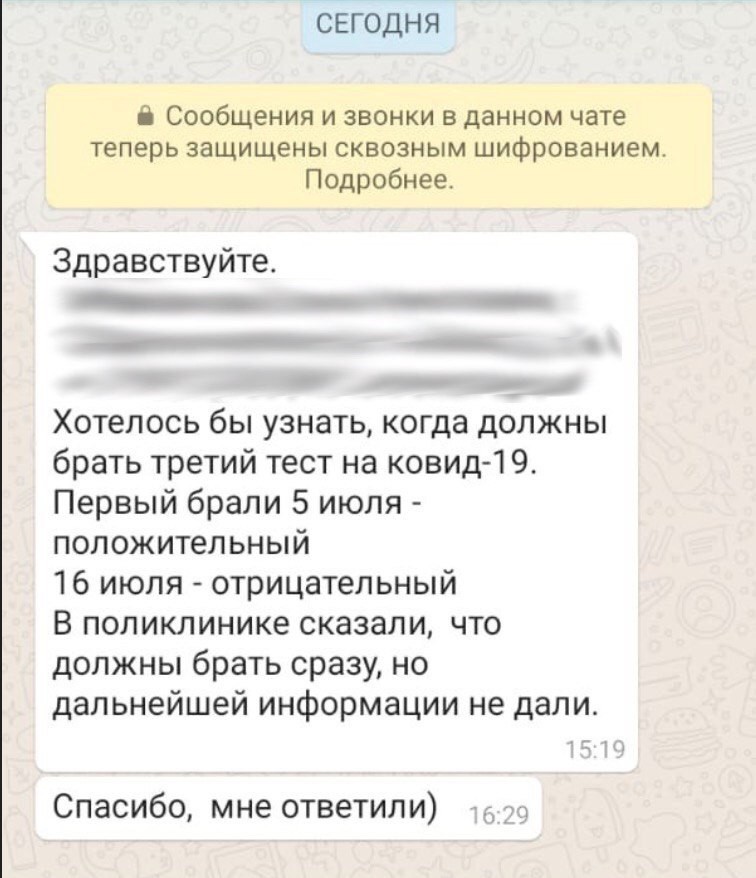 Поступившие обращения передаются медицинским работникам. Отмечается, что все вопросы берутся в работу и решаются в сжатые сроки. Все больные коронавирусом или ОРВИ, к кому не приехала скорая помощь или не пришли положенные лекарства, могут написать на номер +79210460393. В сообщении необходимо указать ФИО, адрес, мобильный телефон, поликлинику и суть проблемы тезисно.