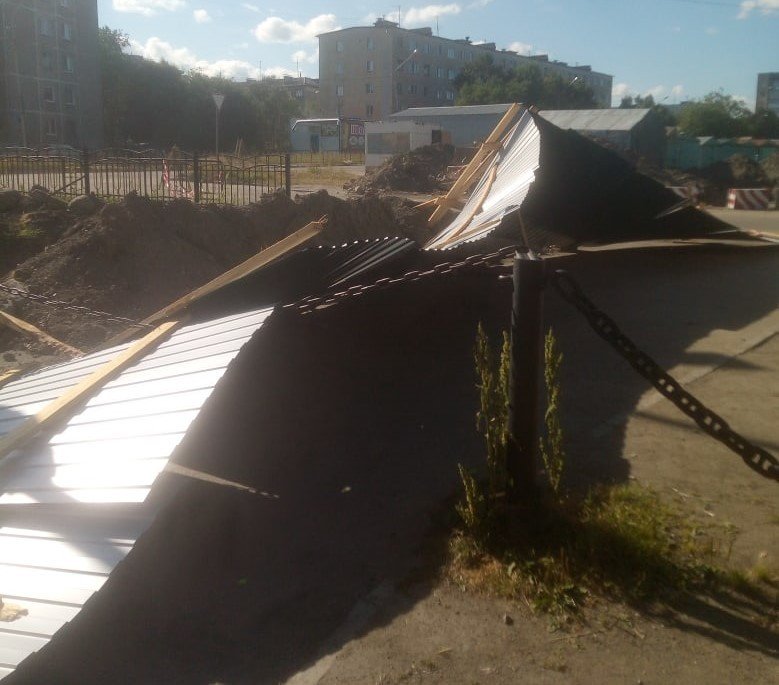 В Мурманске на аллее возле дома №20 на улице Хлобыстова упало металлическое ограждение. Как пишет Кирилл Белов в социальных сетях, забор чуть не упал на двух взрослых людей и проезжающего на велосипеде ребенка. При этом был задет припаркованный автомобиль.
