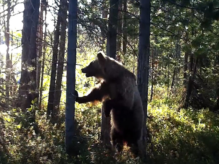 Камера сняла, как косолапый долго чесался об дерево
