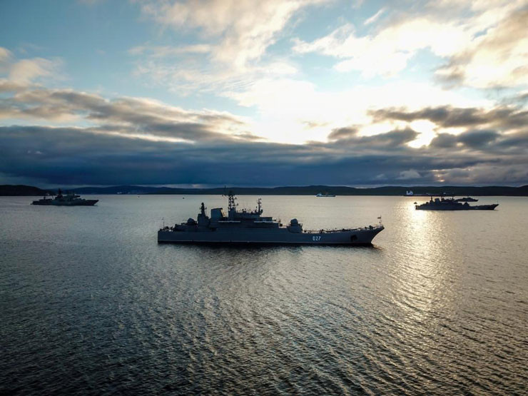 В настоящий момент корабли и суда арктической группировки встали на якорь, чтобы отработать мероприятия по боевой подготовке и повседневной деятельности во время перерыва в плавании. Так, например, морские десантники произвели учебно-боевые стрельбы с бортов кораблей «Кондопога» и «Александр Отраковский», а экипаж морского тральщика «Владимир Гуманенко» отработал алгоритм действий при противоподводно- диверсионной обороне стоянки с профилактическим гранатометанием.