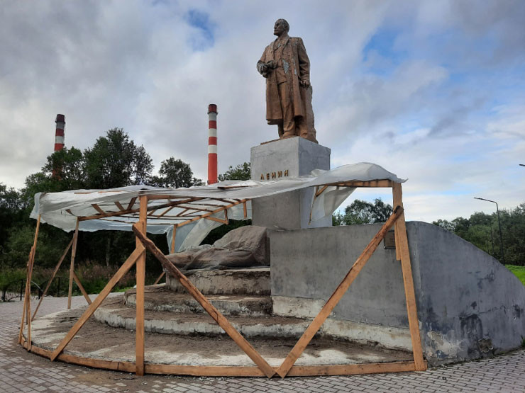 В городском парке Североморска продолжаются работы по обновлению памятника Ленину. Об этом сообщает пресс-служба администрации ЗАТО.