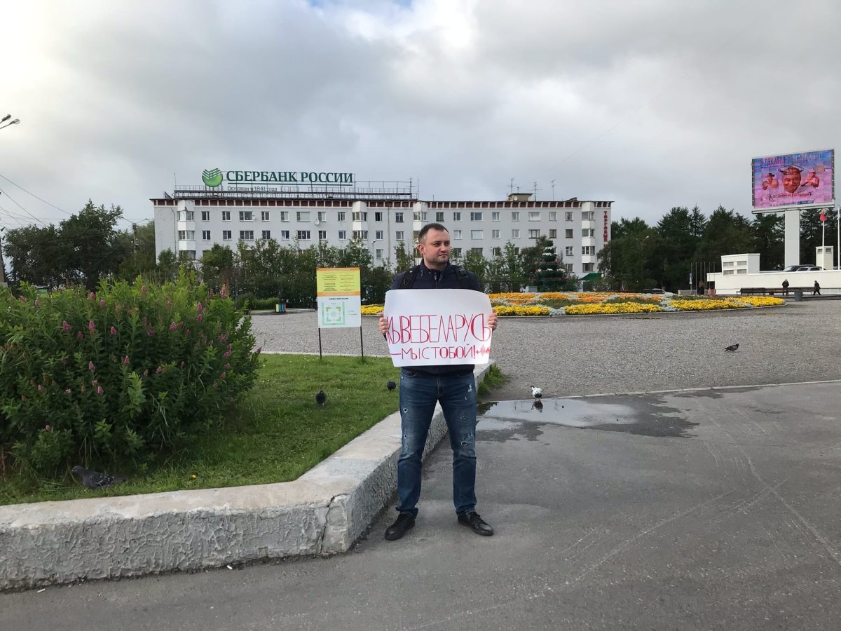 В Мурманске прошли одиночные пикеты в поддержку протестующих граждан Белоруссии. Жители областного центра вышли с плакатами "Жыве Беларусь" в центр города.