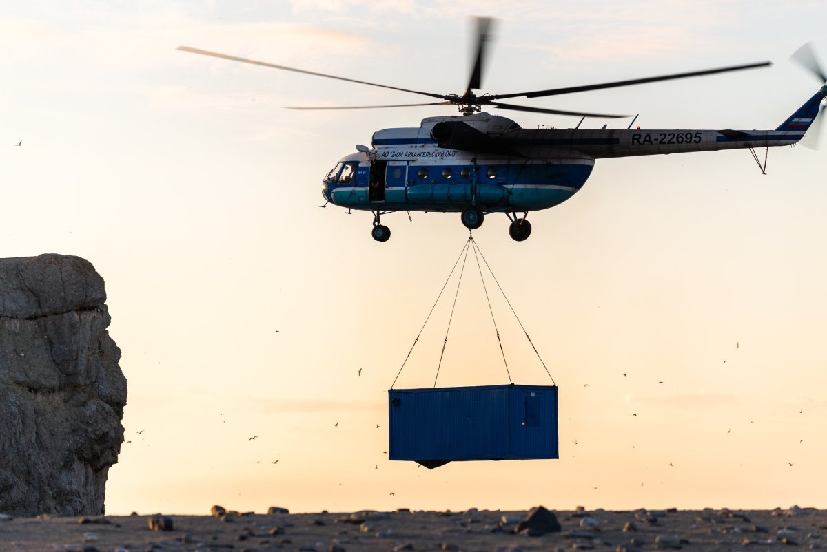 Дом для ученых доставило судно «Михаил Сомов» во время ежегодной летней навигации. Контролировали транспортировку и установку инспекторы национального парка «Русская Арктика», которые в будущем будут использовать его для наблюдений за атлантическими моржами.