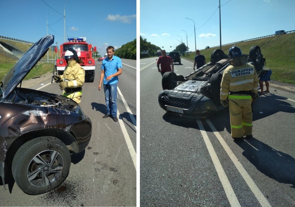 Возле села Хмелинец в Липецкой области произошло ДТП с жителями Мурманской области. По предварительной версии, Citroen не уступил дорогу и врезался в бок Renault. В результате столкновения второй автомобиль перевернулся.