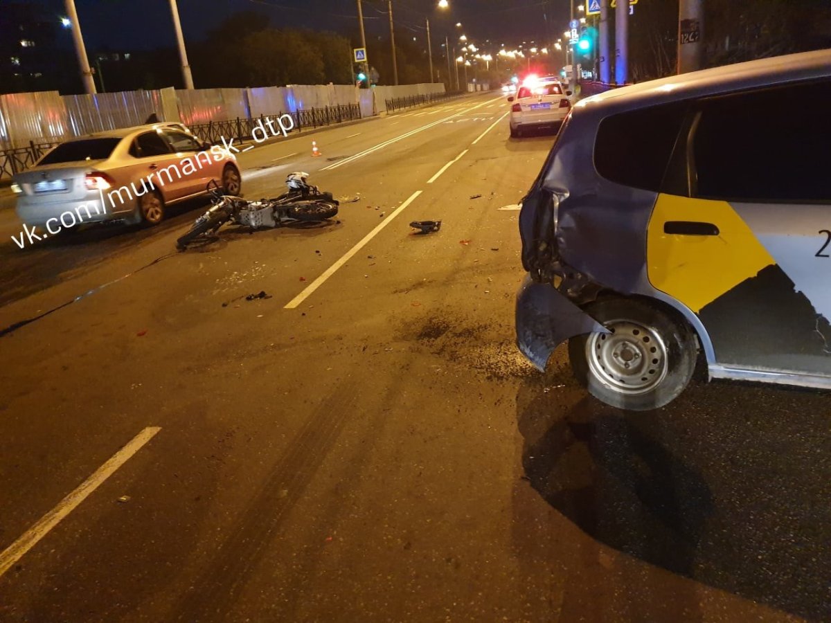 В Мурманске в районе дома №42 по улице Копытова произошло ДТП с участием такси и мотоцикла. Как сообщает инспектор по пропаганде УГИБДД по Мурманской области Евгений Шевченко, автомобиль Honda поворачивал налево и не предоставил преимущества мотоциклу Kawasaki.