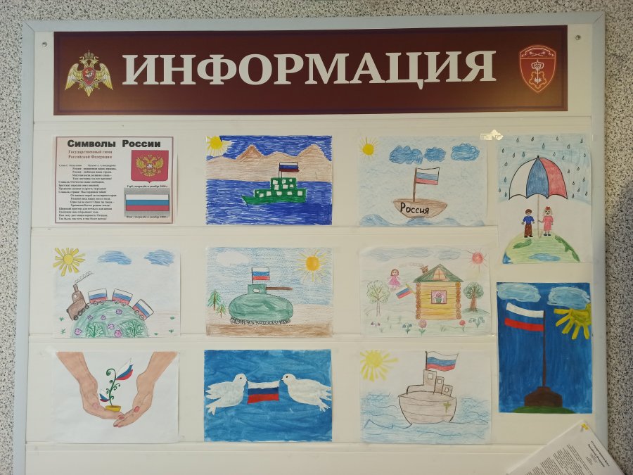 Во время занятия мальчишки и девчонки подготовили рисунки на тему праздника. Творческие работы были размещены на стенде в административном здании Отдела вневедомственной охраны по Кандалакшскому району.