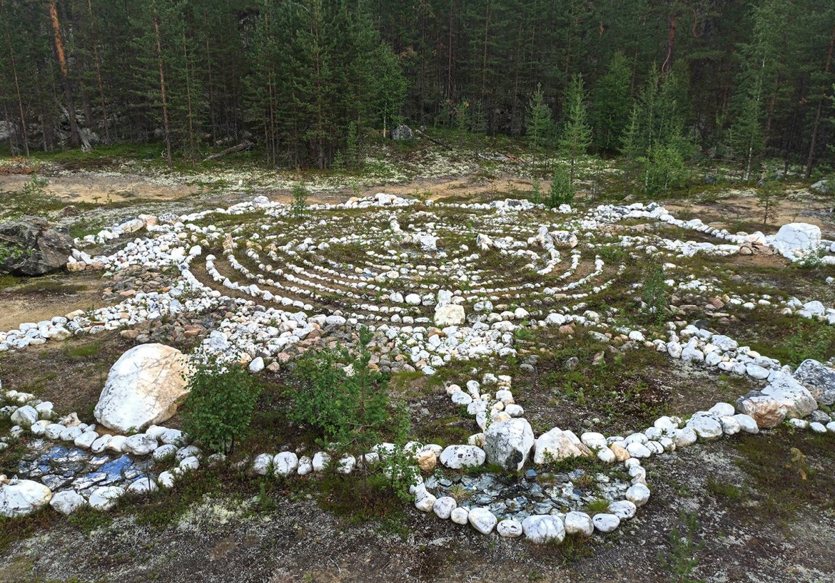 В центр классического семиповортного лабиринта помещены ещё пять дополнительных витков и такие конструкции встречаются у многих народов. Они создаются для гармонизации энергетических потоков в теле человека и являются священными местами. Обнаружившая лабиринт северянка отмечает, что ранее здесь кто-то побывал, так как были найдены неподалёку импровизированные подсвечники из старых консервных банок и запас дров для костра.