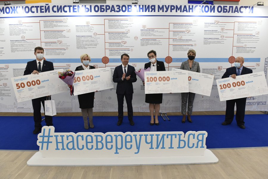 Кроме того, состоялась церемония вручения денежных сертификатов победителям регионального конкурса «Лучшая практика дистанционного обучения». Напомним, победителями стали учебные заведения из Кировска, Мурманска и Кандалакши. Победители получили по 100 тысяч рублей, а занявшие второе место – по 50 тысяч рублей.