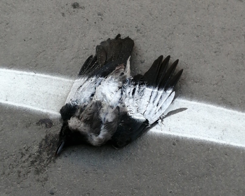 В Никеле дорожные рабочие положили разметку поверх мёртвой вороны. На это обратили внимание жители посёлка, которые увидели птицу на улице Гвардейская.