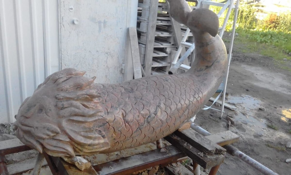 Памятник с изображением герба Колы установят на берегу Кольского залива. В настоящее время рабочие уже монтируют постамент высотой чуть более трёх метров. На верхушку водрузят каменное изваяние в виде белого кита. Скульптуру завершает в своей мастерской Вячеслав Самохин. Гранитная чудо-рыба будет иметь размер в 1,35 метра.