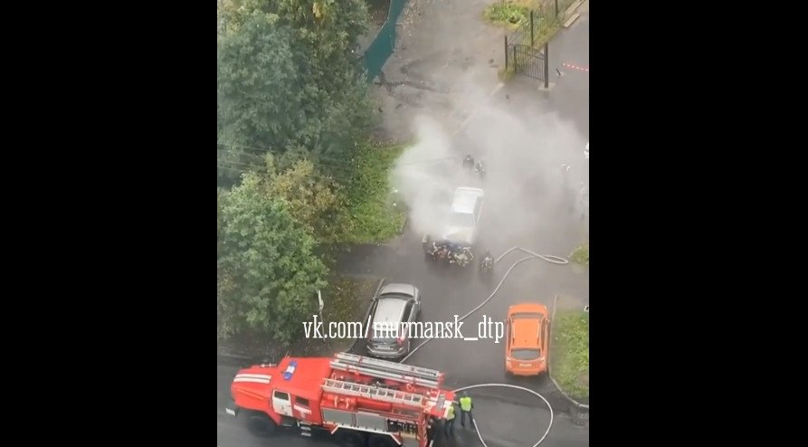 В Мурманске возле здания Первомайского районного суда горел автомобиль. Сообщение о пожаре на проспекте Ленина, 2, поступило в МЧС 9 сентября в 17:04.