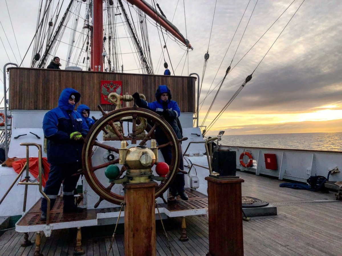 Для курсантов наступил самый непростой и холодный этап плавания, который растянется на 2 800 миль. Экипаж уже облачился в тёплую одежду.