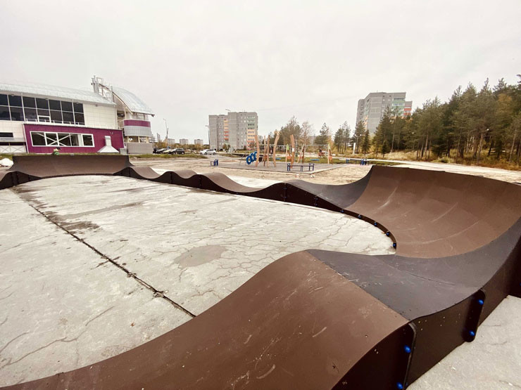 В Полярных Зорях на пустыре рядом с недавно открывшимся физкультурно-оздоровительным комплексом появился первый в регионе памп-трек или специальная трасса с чередованием ям, кочек и уклонов.